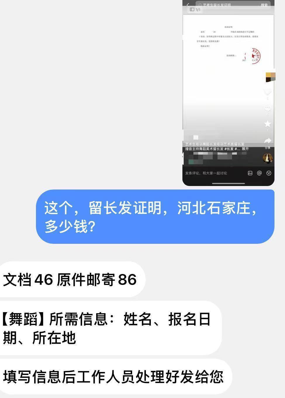 有商家售卖“留长发证明”